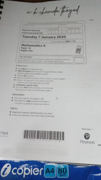 Edexcel Grade 9 -Mathematics A PAPER 1H Higher Tier